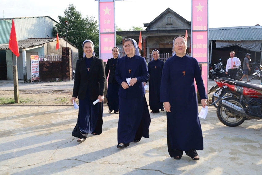 | Nuns from Nuoc Ngot Parish arrived at the polling area in An Bang Hamlet. Photo: Huu Phuc |