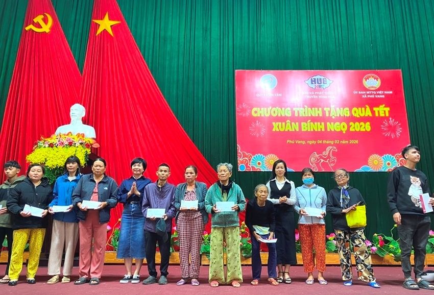 HNN.VN - To share difficulties with people in disadvantaged circumstances on the occasion of the Lunar New Year of the Horse 2026, on February 4th, Thien Tam Fund of Vingroup, in coordination with Hue Newspaper and Radio, Television, organized the presentation of Tet gifts to poor households in Hue City.