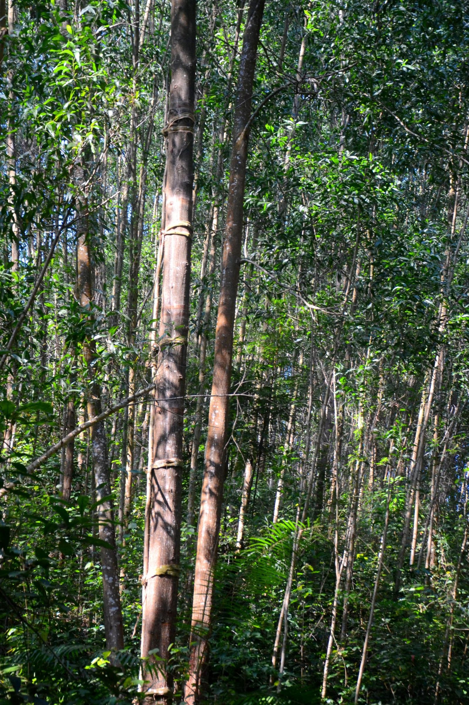 After getting rested, our group continued to go through the forest. After following Luyen and Neo for more than one more hour, apart from seeing traces of a huge hive on a large 10m-high branch that was... already harvested by another group, there was no hive to be seen. “This hive must have had about 4 to 5 liters of honey. It’s unfortunate that we’re late. You see the "đằng" over there? That’s the tool we honey harvesters use to help us climb more easily and safely when we encounter a hive that is on a tall and big tree,” Luyen said.
