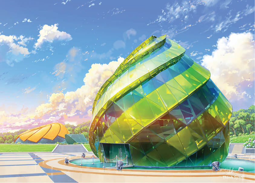 Beautiful landscapes such as Lam Vien Square (Da Lat), Nghinh Phong Tower (Phu Yen) and the Wooden Church of Kon Tum, etc., have come to anime drawings.