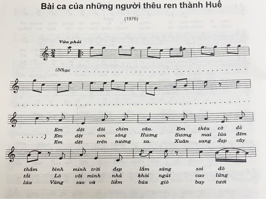 | The music sheet of “Bai ca cua nhung nguoi theu ren thanh Hue” (Song about embroiderers in Hue) |