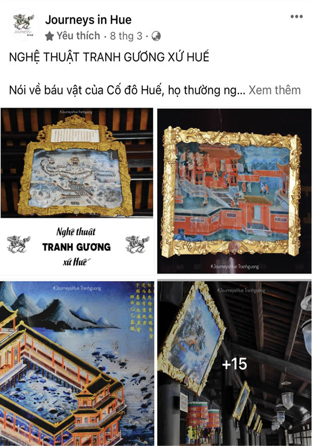 Those articles could be about nostalgic hand-painted signboards or the graves of the meritorious officials. Or, they could be about trips to poetic riverside villages, meetings with very ‘Hueish’ women, or about murals village or mirror art. More specifically, the young people also promote and connect to contribute to the development of unique handicrafts of the ancient capital.