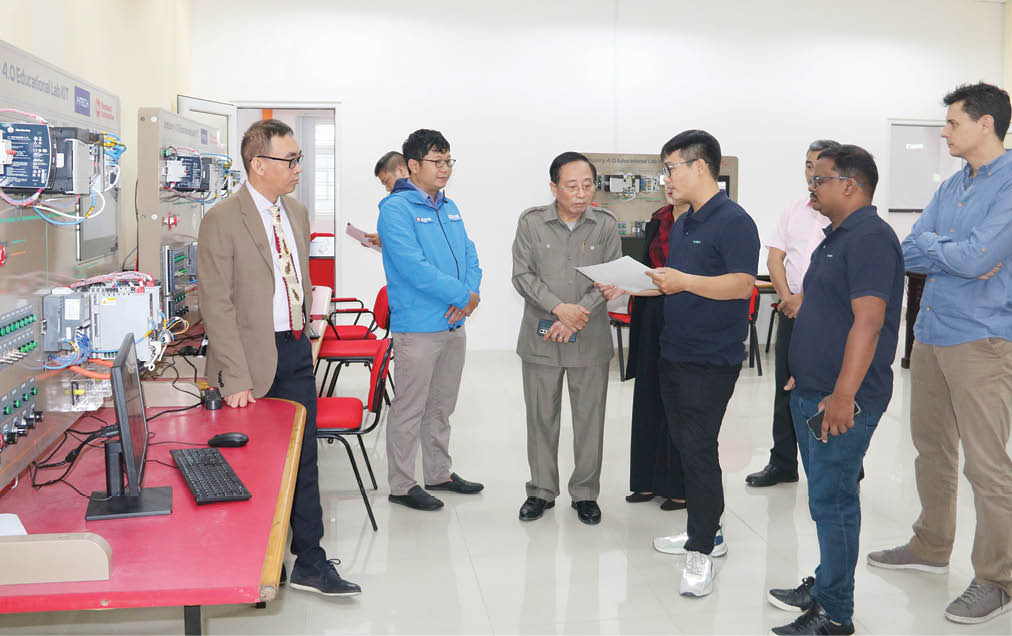 Experts visiting the Industry 4.0 management system using IoT technology at Faculty of Engineering and Technology, Hue University