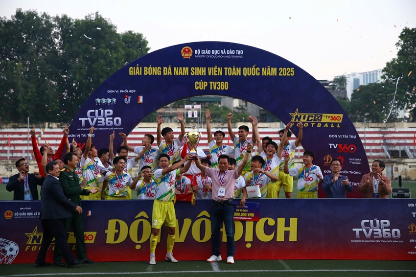 HNN.VN - The 2025 Men’s National Student Football Championship - TV360 Cup ended with the championship title belonging to Hue University after a nail-biting victory over Hanoi University of Physical Education and Sports in the penalty shootout.