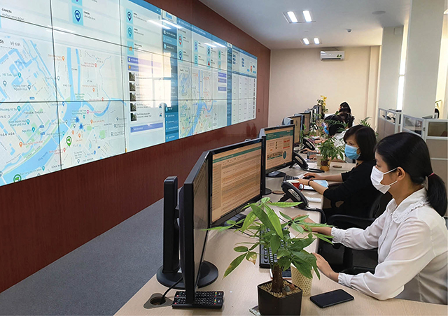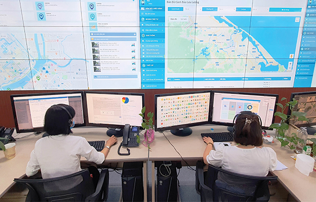 The IOC staff is on duty 24 hours a day to receive information posted by the people to transfer to the relevant agencies for processing. Photo: THAI BINH