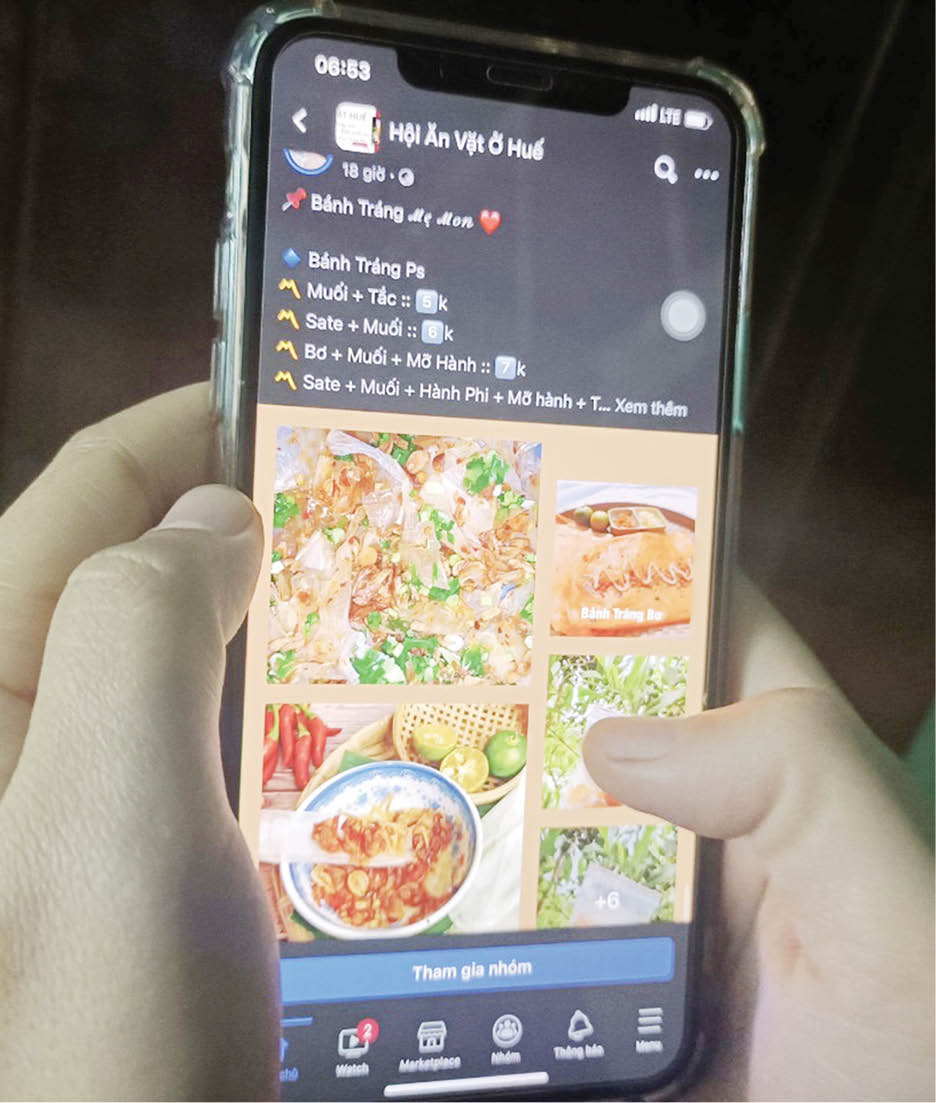 In modern life, instead of street vendors, technology has brought snacks closer to customers thanks to a team of deliverers and social networking sites. Bustling with hundreds of different dishes, Hue Snacks Group alone has more than 29,000 members participating. Following closely behind is the group "Hue Snacks Market" which attracts more than 25,000 members buying and selling.