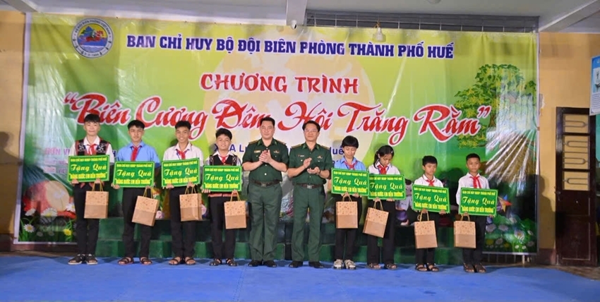 On the same day, under the direction of the City Border Guard Command, border guard stations across the two border routes coordinated with local authorities and schools in their stationed areas to organize festive activities and gift-giving for children celebrating Mid-Autumn Festival. Notably, Thuan An Port Border Gate Station, Chan May Port Border Gate Station, Hong Van Border Gate Station, and Quang Nham Border Guard Station together presented nearly 2.000 Mid-Autumn Festival gift sets and presented support packages for disadvantaged students, with a total value of nearly 200 million VND.