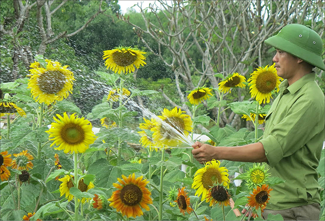 At 5am, Mr. Ho Thong, a guard staff member of Huong Dien Martyrs Cemetery (Phong Dien District), woke up to sweep the leaves and water the trees in the cemetery grounds. Heavy sweat in the harsh sunlight did not prevent him from watering all the gardens around the memorial section. On 27 July each year, from early morning, he picked flowers from the cemetery’s garden to place on the memorial.