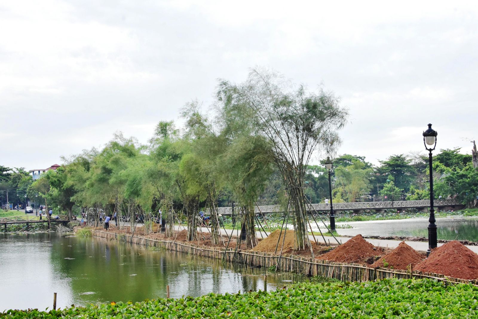 The bamboo lines have just been planted on Le Van Huu street in the middle of Tinh Tam lake