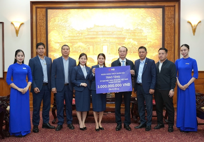 Representatives of MB presented 3 billion VND through Hue City VFF Committee to join hands with the locality in overcoming the consequences of the recent floods and helping residents stabilize their lives.