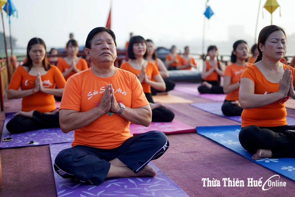 The meditation session ended as soon as the boat hit Bao Vinh Ancient Town. The boat returned to Nghinh Luong Pavilion. This period was for relaxing and stretching the muscles with yoga exercises. The organizer of this meditation tour said in the coming time, the boat would go upstream to Kim Long, Thien Mu Pagoda and maybe even further.