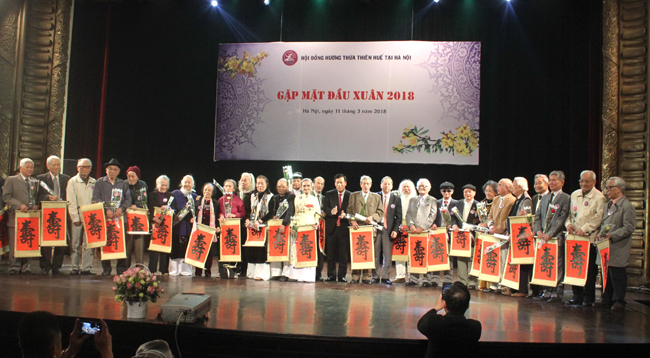 At the meeting, leaders of Thua Thien Hue Association of Fellow-Countrymen in Hanoi and leaders of Thua Thien Hue province held a longevity wishing ceremony for the elder members of the association.