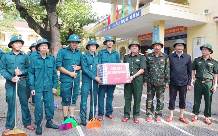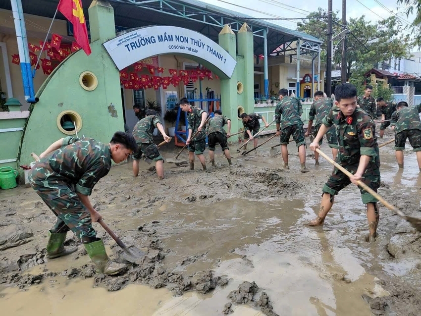 On early morning of October 31st, at the Area Defense Command (ADC) No. 1 – Huong Tra, all officers and soldiers were mobilized across 20 wards and communes to help residents recover from the floods.