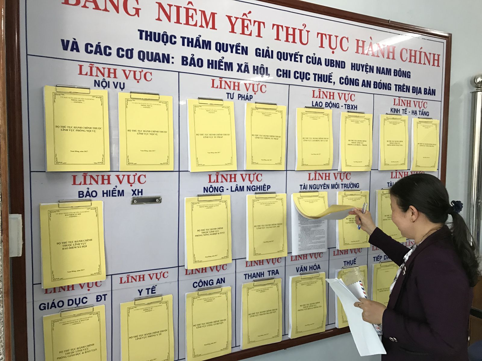 Administrative procedures posted at Nam Dong Public Administrative Center.