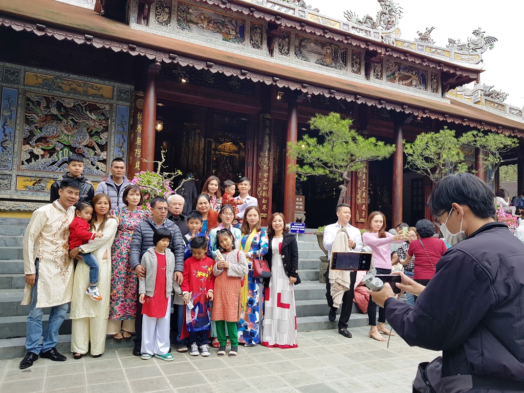 A family taking the opportunity to take photos to celebrate New Year's Day at the pagoda