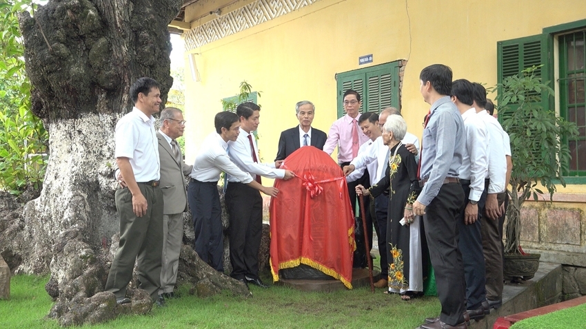 | Representatives and delegates from various units unveil the stone stele of the Vietnamese heritage tree |