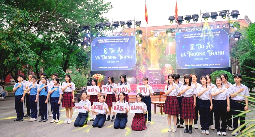 | 12th-grade students from Quoc Hoc - Hue High School for the Gifted at their graduation and appreciation ceremony |