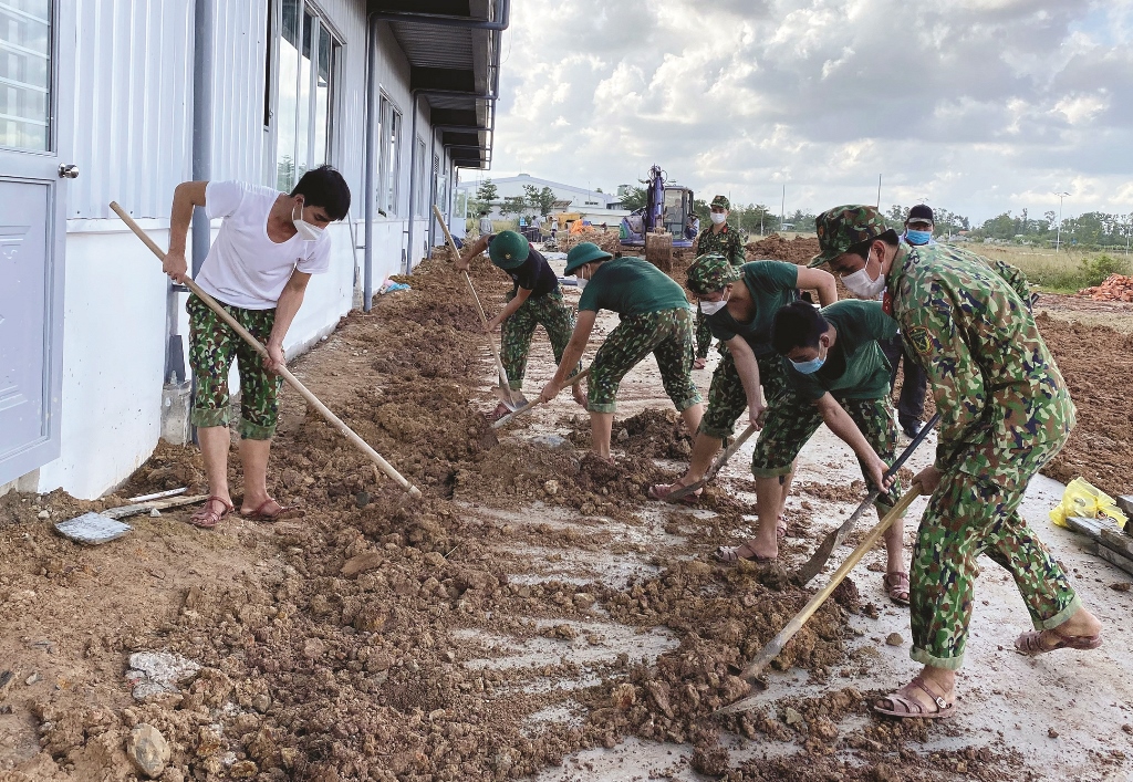 These days, in addition to massing forces for the frontline against the pandemic, the Provincial Military Command also strengthens human resources to complete areas for management, reception and treatment of people infected with SARS-CoV-2 virus (F0) with no symptoms or mild symptoms,such as at the Dormitory of Human Resource Training and Development School of Vietnam Joint Stock Commercial Bank for Industry and Trade (T3), located in Phu Thuong ward, Hue city, at No. 23 Vocational College and some other locations in Huong Tra town. Currently, the management, reception and treatment areas for F0 with no symptoms or mild symptoms have welcomed and treated many patients in the area.