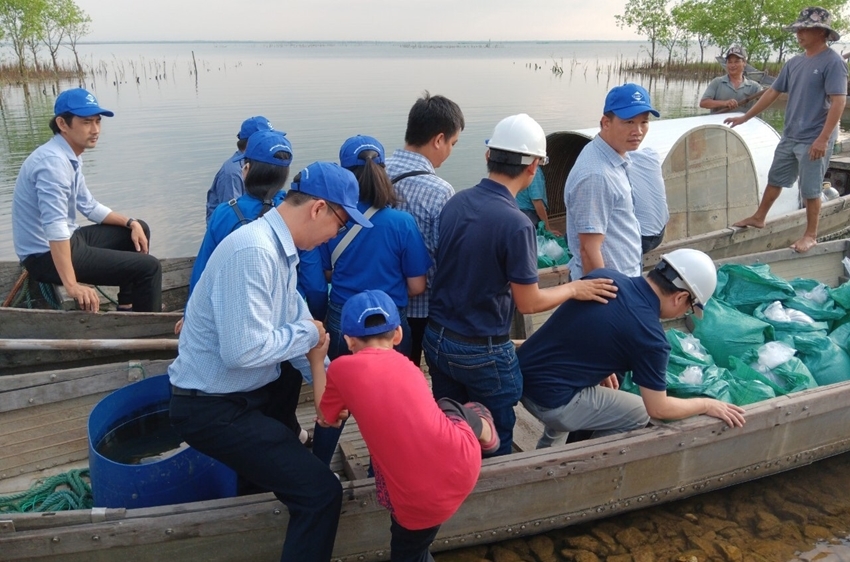Releasing nearly 100.000 shrimp and fish fingerlings into Tam Giang - Cau Hai Lagoon