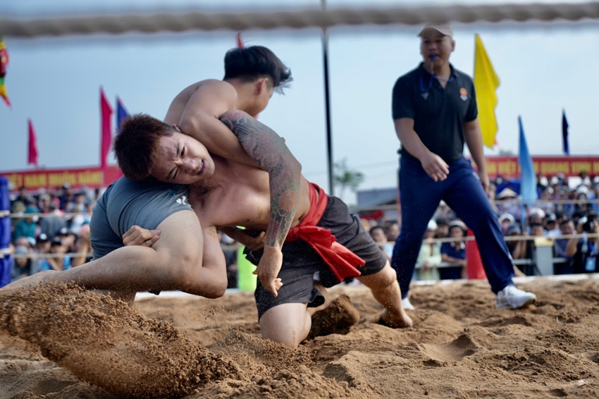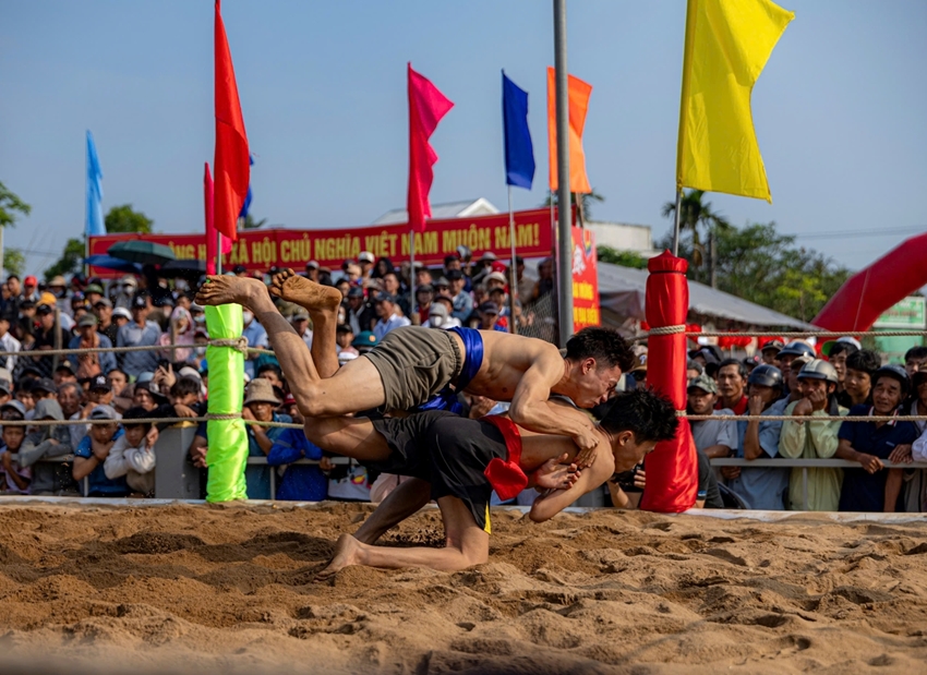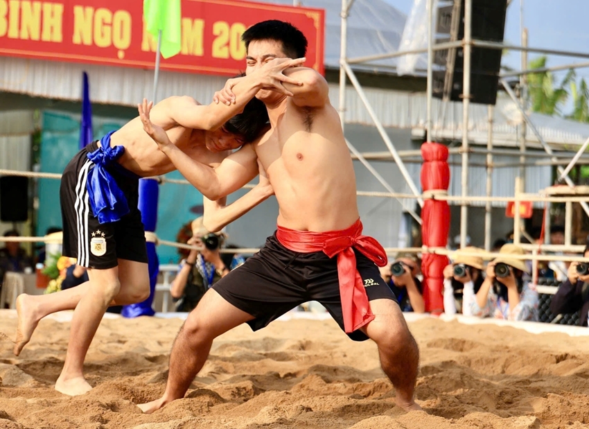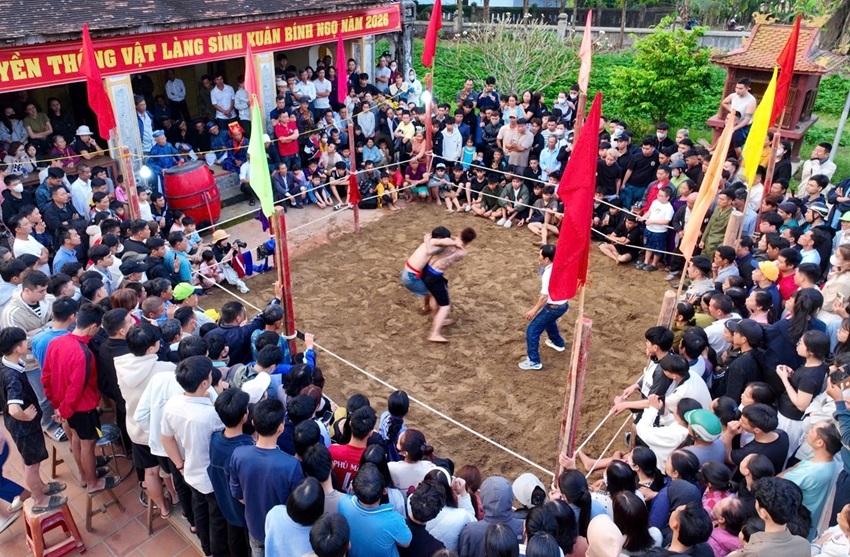 HNN.VN - On the morning of February 26 (the 10th day of the first lunar month), Sinh Village wrestling festival in Duong No Ward, Hue City, officially opened in a vibrant atmosphere, drawing large crowds of residents and visitors from across the region to cheer and compete in the arena.