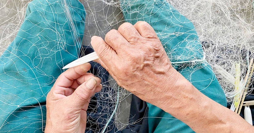 In addition to weaving nets, Mr. Ha also takes on net repair work for fishermen. This job lasts year-round, without a specific season. When the sea is rough, fishermen hire him to mend nets hundreds of fathoms long. When the sea is calm and the boats head out to fish, Mr. Ha is either on his own boat or available to urgently repair nets for fishermen eager to set sail.