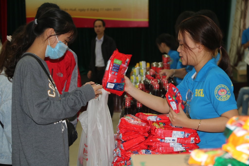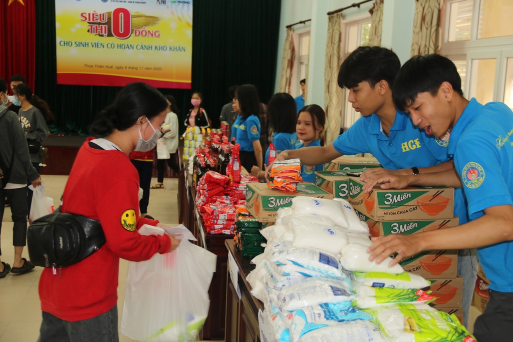 Mr. Nguyen Pham Bao Quy, Vice Secretary of the Youth Union, President of the Student Union of the University of Economics, Hue University, said that this was the first time that a “Zero-VND” supermarket was opened to students. This program’s main purpose is to support students after the floods. The students have been surveyed and received coupons earlier, which is convenient for the preparation of supplies, as well as organizing steps.