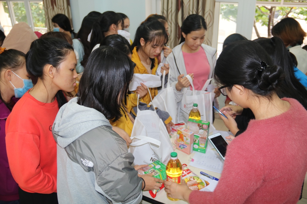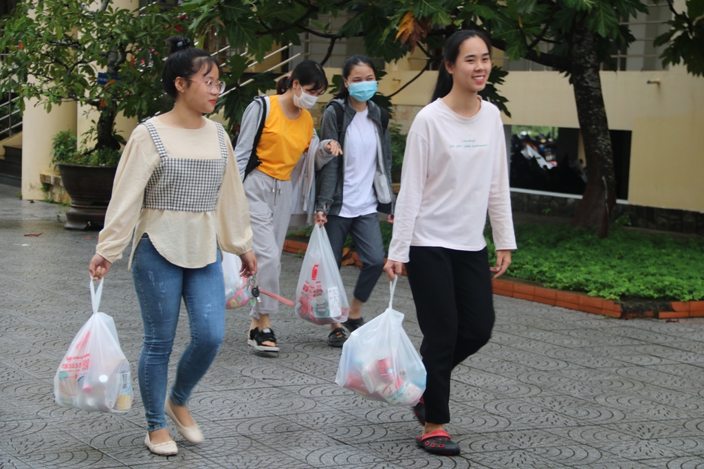 The “Zero-VND” supermarket was opened from 8am to 4pm on the same day, with nearly 20 essential items, such as rice, instant noodles, salt, cooking oil, fish sauce, canned fish, water, milk, and washing powder, etc. Earlier, coupons had been delivered to around 300 students, each coupon worth VND 150,000. They can freely choose items and necessities according to their needs, equivalent to the coupon value.