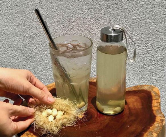 For example, the corn silk water and lotus seeds; the idea of this cool drink has come from a glass of corn silk tea and the lotus seeds sweet soup that Nguyen Van Tuan had enjoyed many times in his childhood. In the glass with the typical light yellow color of corn silk water, there are simmered lotus seeds with delicious taste.