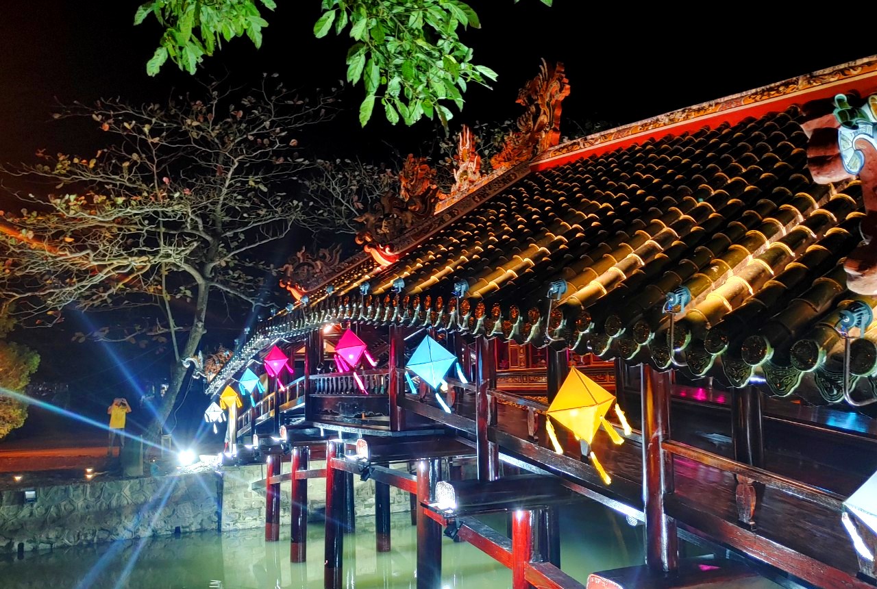 At night, Thanh Toan Tiled roof Bridge is even more eye-catching thanks to its lantern decoration and artistic lighting system