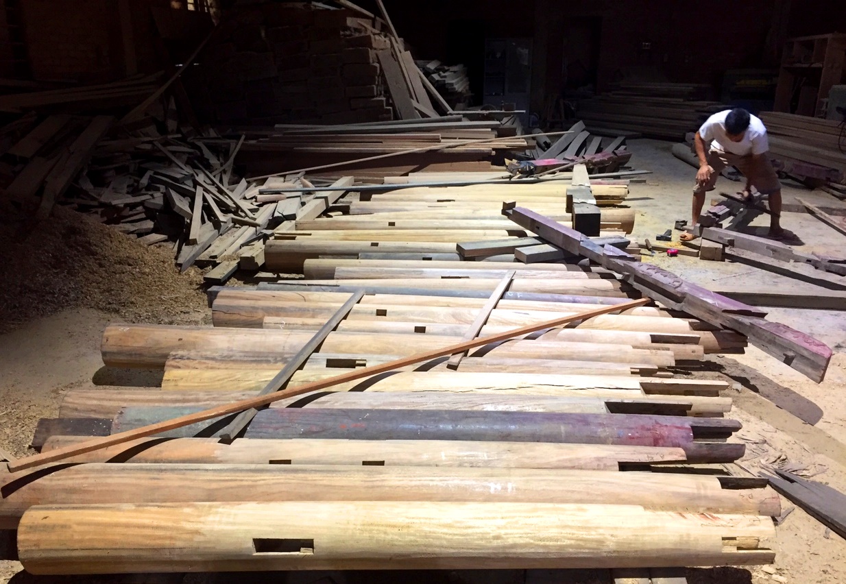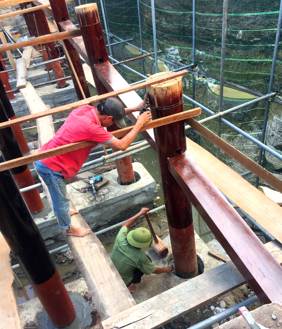 Below are some images during the restoration and assembly of Thanh Toan Tiled roof Bridge: