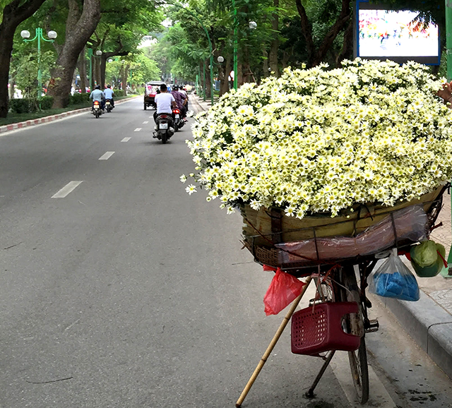 Bicycles with tiny white daisies beautifying Hanoi’s streets. Photo: Ngoc Ha