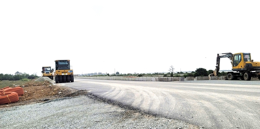 According to reports from the project contractors (Dat Phuong Group JSC, Tan Nam Construction JSC, and 479 Hoa Binh JSC), the Thuan An bridge section has been completed, with only drainage pipe installation, finishing works, and site cleanup remaining. For sections 1A and 1B, the roadbed, slope reinforcement, cross-drainage systems, partial asphalt paving, and technical box culverts have been completed. Contractors are currently focusing on asphalt concrete paving, laying crushed stone aggregate, and finalizing technical infrastructure.
