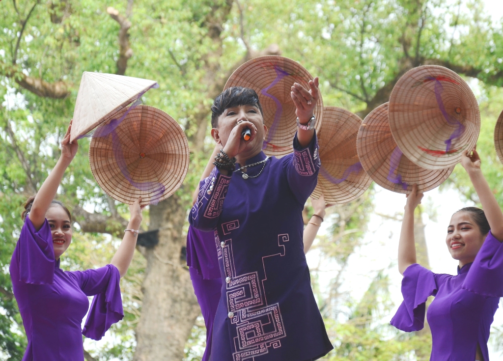 In the waiting time for the award presenting ceremony, many spectators and athletes were surprised with Hue music performances of Long Nhat, the singer