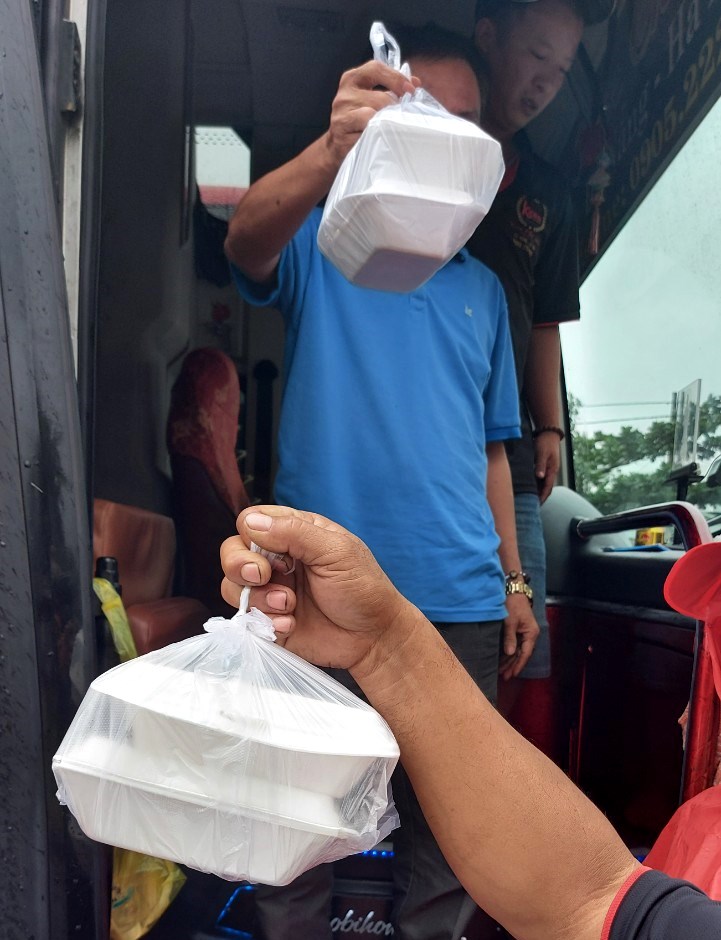 “Because we do not know exactly when the storm would dissipate, we are mobilizing local people and volunteer groups in the area to continue to prepare food for passengers, drivers, and help them feel secure and safe while waiting for the storm to pass,” shared Mr. Nguyen Huu Lai, a local person who was supplying rice and loc cake for passengers.