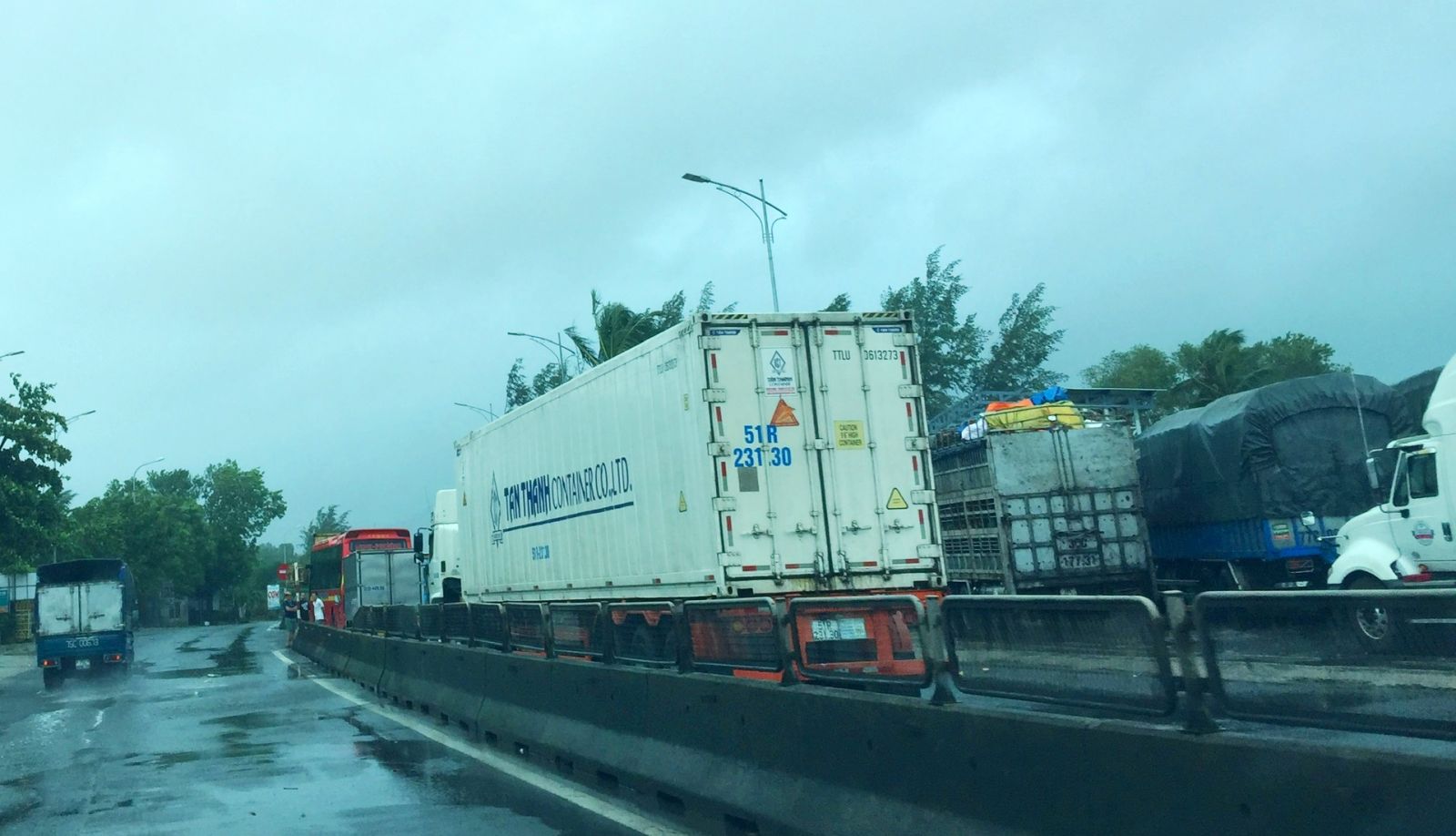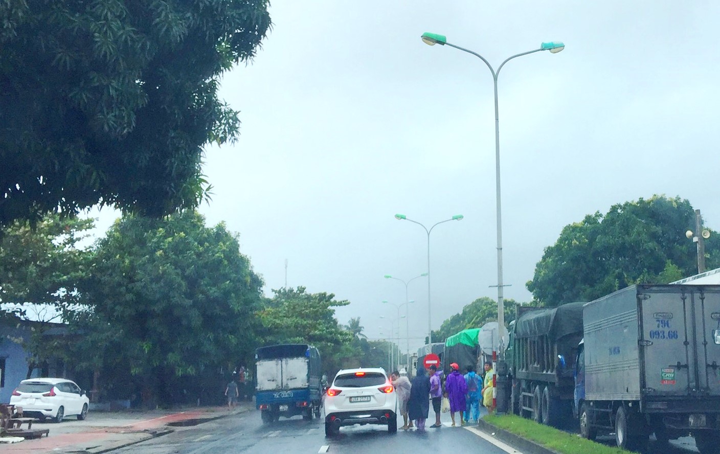 Therefore, from that time until the afternoon of October 28, hundreds of vehicles, mainly trucks, passenger cars and thousands of passengers had to stop in Lang Co town. A section of Highway 1A of about 4km, from Lap An residential group to Hai Van tunnel entrance was congested, and vehicles could only travel on half of the road.