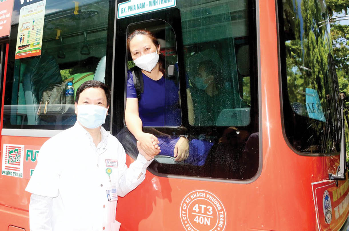Female staff of Hue Central Hospital on their way to the Southern frontline for pandemic prevention and control