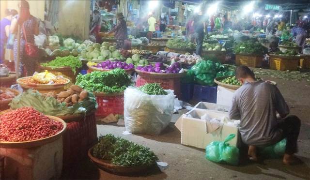1 a.m., it’s the time when most of the Hue people have already had a sound sleep. The nightly diners near the market were still lit. Most of their guests were laborers, servers, and porters who were waiting for trucks to unload goods... More and more trucks arrived at the market. The gates were opened, and the whole space was filled with talking and laughing, the noisy truck horns ... as well as the croaking of the frogs. Mr. Ho Van Leo, a truck driver carrying vegetables from Dak Lak to the market cheerfully said: "What a relief! I thought I wouldn’t be able to get here on time for delivery, as the road was jammed due to a heavy rain.” The accent of the rough, dark-skinned man from the Central Highlands made me tilt my ear to hear him in the sound of the arriving trucks. Most of the agricultural products here are transported from Da Lat and some localities in the Central Highlands. Every night, hundreds of trucks come here to deliver vegetables for the merchants in the market. Phu Hau wholesale market is the source of vegetables and fruits for neighboring areas in the province and even for merchants from Quang Tri to resell in their market.