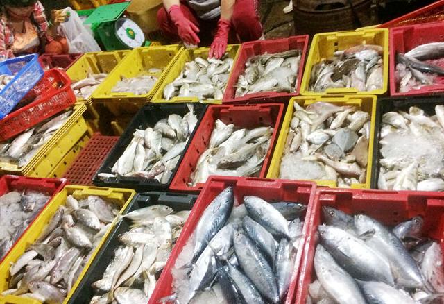 Ms. Thu, in her worker uniform and worn-out hat began to push the cart to carry the goods for the kiosks in the market. After finishing with the vegetable shops, she continued the delivery to the seafood section. Along with Ms. Thu was a young agile well-built woman named Lanh, from Phu Vang who came here early. While unloading carrots from the truck into the cart, Ms. Lanh shared, "There is no choice. I’ll do whatever work for anyone hiring me. No matter how hard it is, as long as I can get money to send my children to school.” When I asked if she was tired, she said she only felt exhausted after the work was done, and at the moment she didn’t feel it; she was already used to labor work.