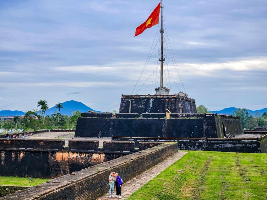 Not only has she sewn the national flags, but Ms. Hanh has also spent 15 years sewing flags hung at Ky Dai Hue. The flag at Ky Dai is 12 m long, 8 m wide, and the yellow star is up to 4 m high, for a total of over 130 m2 of fabric. To not let the flag become discolored, each year she undertakes to sew up to 12 flags to hang at Ky Dai.