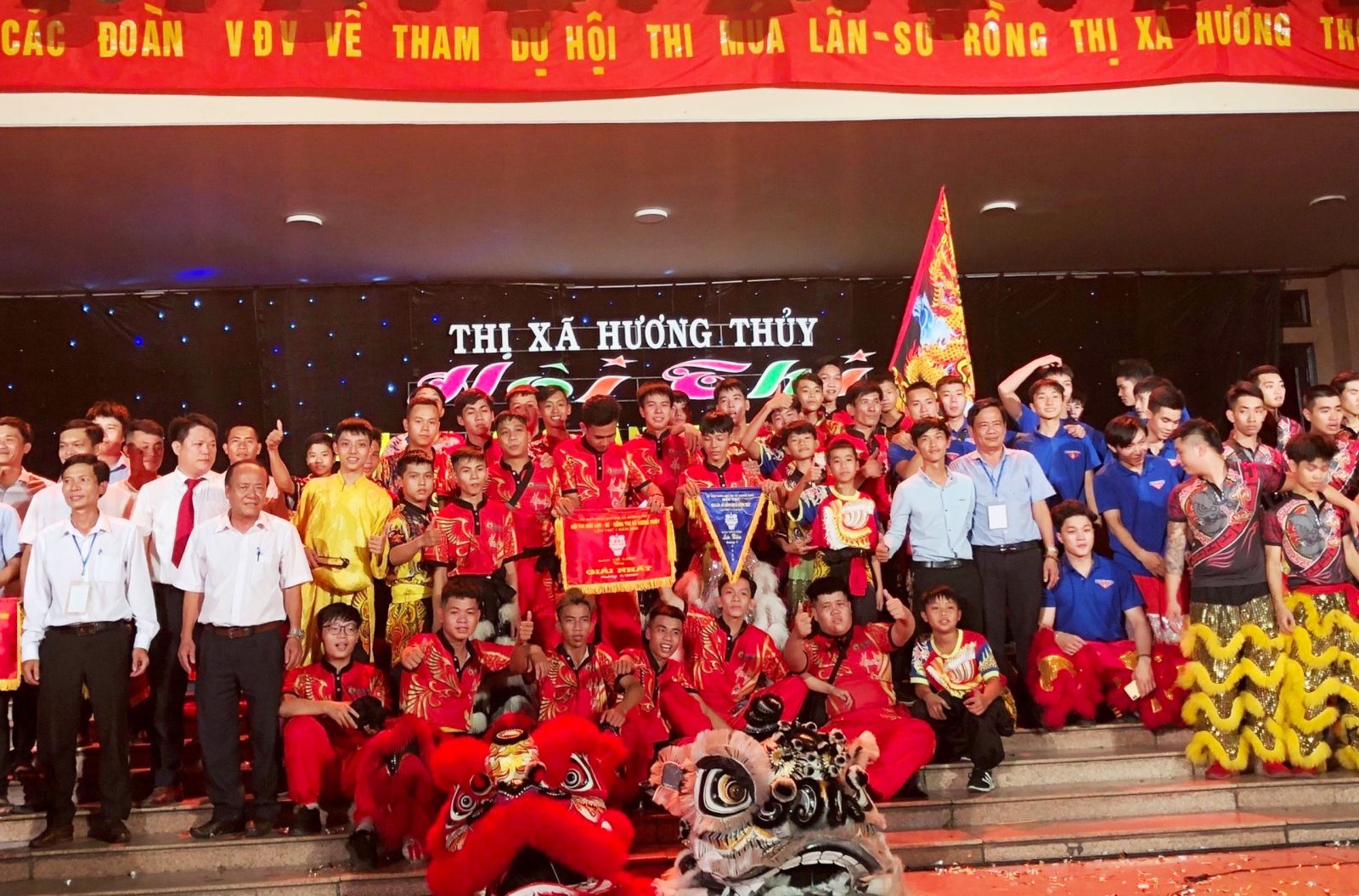 After the opening drum performance, the unicorn dance performance "Nam su dai pha Mai hoa tran” and the dragon dance "Thien Long giang tran” by Hung Son Unicorn Dance Group (Thuy Van Commune), 150 amateur athletes from 10 teams from 10/12 communes and wards of Huong Thuy Town entered the competition with attractive and beautiful dances, such as: Song lan doat ngoc (Thuy Phu commune), Nam su vuot thac hai linh chi (Thuy Duong Ward), Song lan vuot Truong Son hai linh chi (Thuy Thanh commune), Song lan tam bao lien hoa (Thuy Bang commune), Di lạc ha son – thuan nam su hi tuu (Thuy Luong Ward) ... in the endless cheers of thousands of spectators.