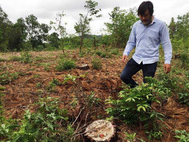 N.T.V., a local farmer, said: "Many people saw the pine trees get cut down. They cut the trees down, saw into parts and used the trucks to transport on the main road for over a week. Yet, we didn't see any authority. Besides, we here were also mistaken that the forest belonged to the state, and that exploitation was allowed. So, we did not report to the ward. When it was discovered, and many inspection groups came to check up, the trees have been cut down and transported away."