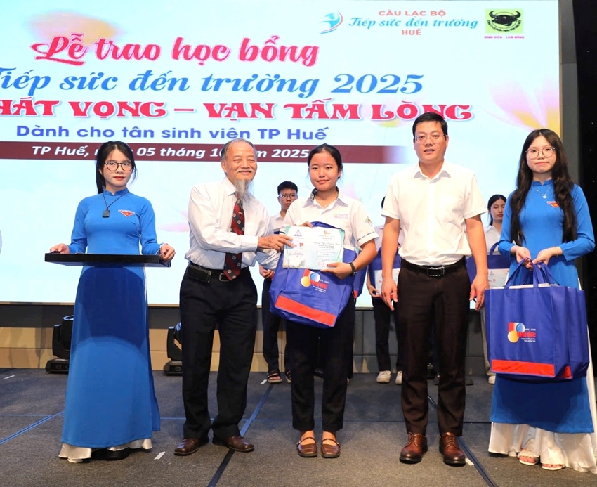 HNN.VN - On October 5, Tuoi Tre Newspaper, in coordination with Hue City Youth Union, organized the “Supporting students to school” scholarship awarding ceremony with the theme “One aspiration - Ten thousand hearts” for 89 new students in Hue City who face difficult circumstances with strong determination.