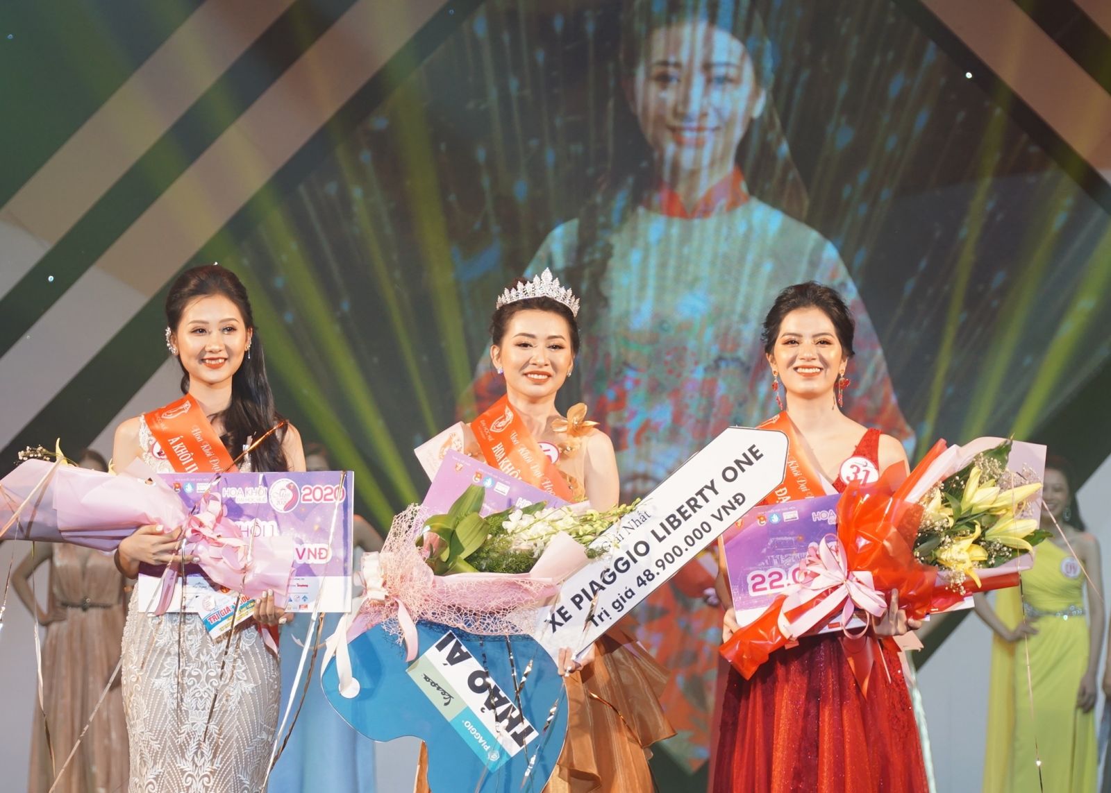 Through the outstanding performances which received many compliments from the audience, contestant Vo Thi Y Nhi (University of Foreign Languages, number 25) passed the remaining 20 contestants to claim the crown. First runner up and second runner up are Ho Diep Suong (University of Economics, number 31) and Vo Le Que Anh (University of Foreign Languages, number 03 ). After the contest, the Miss and two runner ups will be directly admitted into the final round of Miss Vietnam in the southern region.
