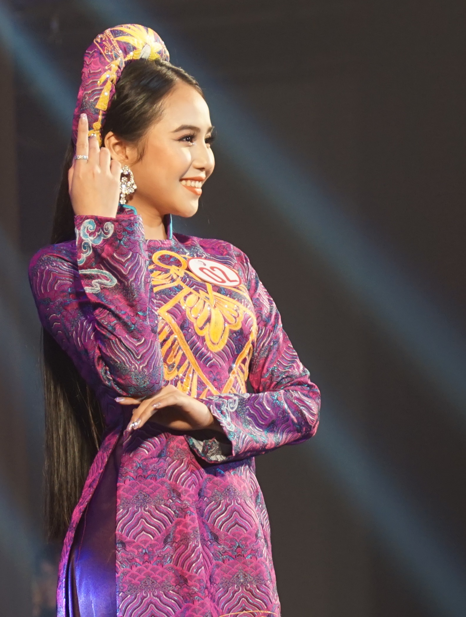 Nguyen Thi Thuy Loc (University of Economics) with a bright smile and striking ao dai color