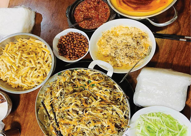 On big worship ceremonies, "buffet at the pagoda" usually includes fried rice, porridge, and all kinds of vegetarian vermicelli. In small offerings, a pagoda meal has only a few dishes of beans, tofu, fried vegetables ... frugal, but still delicious. Despite not being as complete as at home and at the restaurant, the delicate taste of salt, soy sauce or certain kind of vegetarian seasoning powder that is a mystery to me – they just linger on.
