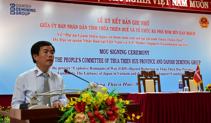 HNN.VN - MOU signing ceremony of "Explosive Remnants of War Hazard Reduction in Thua Thien Hue Province" project funded by Embassy of Japan in Vietnam and the A.P. Møller Support Foundation (Denmark) has been organized by the Thua Thien Hue provincial People's Committee (PPC) and the Danish Demining Group (DDG) on the morning of June 1st.