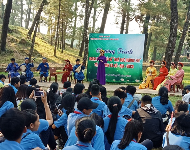 HNN.VN - In the framework of extracurricular activities organized by Dang Van Ngu Secondary School at Tu Duc Tomb on March 3, more than 200 ninth-grade students of the school participated in the exchange with Mr. Vo Que - the poet and Ca Hue artists.