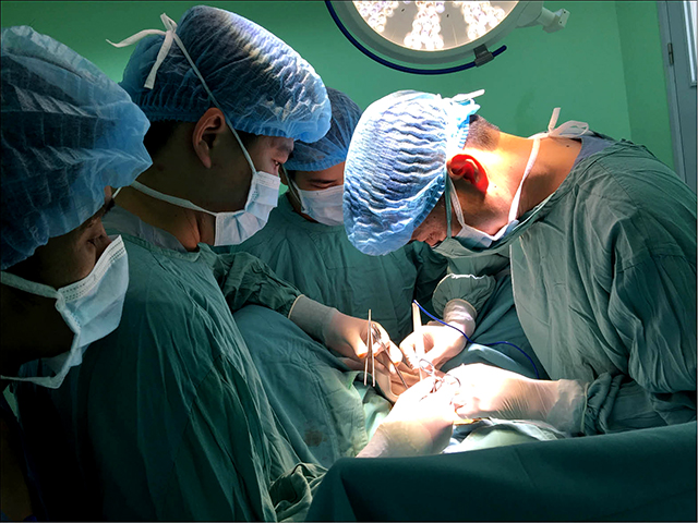 Associate Prof. Dr. Pham Anh Vu (on the right end) is operating on one patient with vaginal aplasia