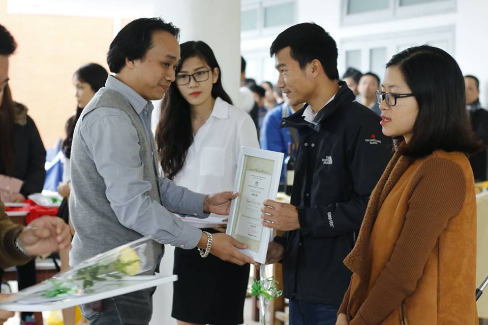 The artists, whose artworks displayed at the exhibition, are awarded certificates. Photo: Minh Hien
