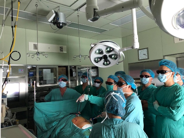 Assoc. Prof. Dr. Pham Nhu Hiep, Director of Hue Central Hospital said that 3D laparoscopic surgery will help the surgeons see the surgical site with 3-dimensional images, manage difficult cases, perform complicated techniques, shorten surgery time by 70-80% in comparison to traditional laparoscopic surgery.